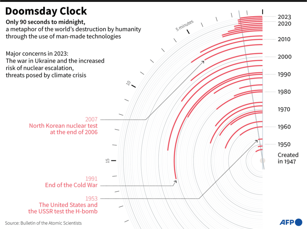 1. Good to know. Seriously! The graphic is a bit confusing though, in that it makes earlier times look more urgent than today, eg 1953 is actually more than 90 seconds, but it looks like much less.