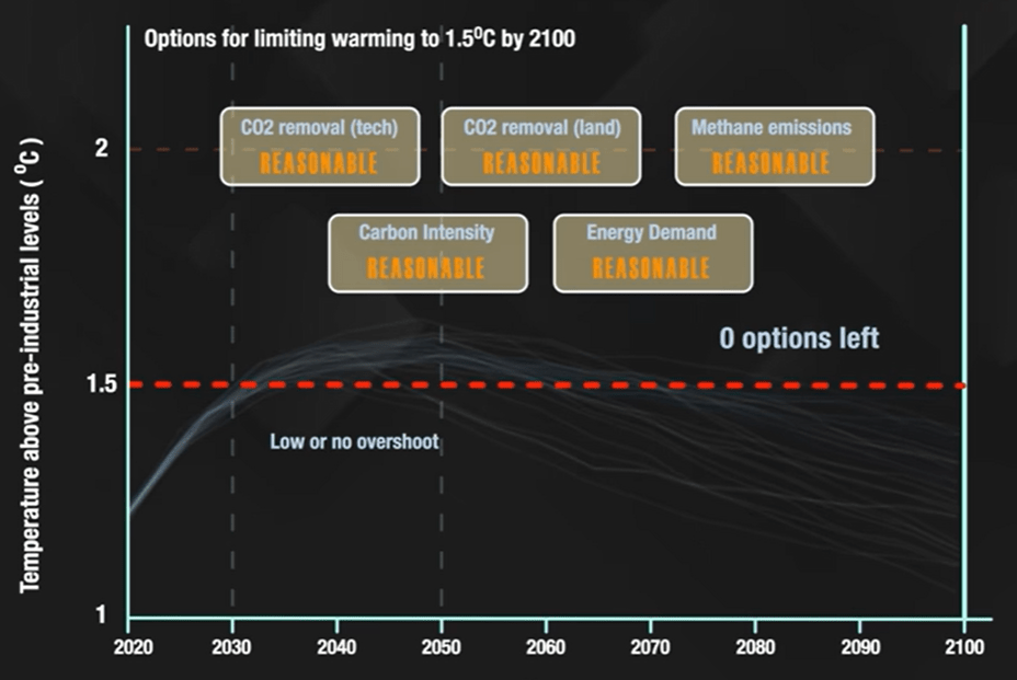 No options left: The Potsdam Institute assessed 1200 IPPC pathways for keeping global warming in check. Based on an assessment of what is realistic and reasonable, they determined that none of these pathways are viable. 1.5C is long gone – even the UN acknowledges this – and now tipping points and higher global temperatures are out of our control.