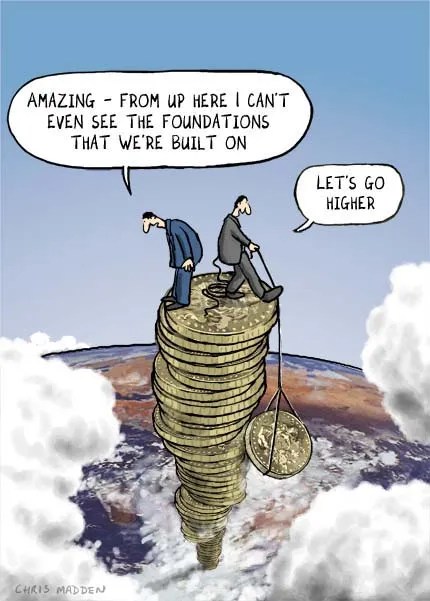 As #overshoot continues at pace, this Chris Madden cartoon illustrates the inevitable collapse of a financial system untethered to climate-ecological reality. Don’t just collapse – #JustCollapse!