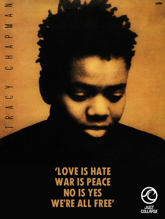 A dystopian landscape of lies, marketing, and conspiracy theories. This is the post-truth world we inhabit – where war is called peace, hate is called love, and collapse is called growth, progress, or transformation. Tell the truth and #TalkCollapse!